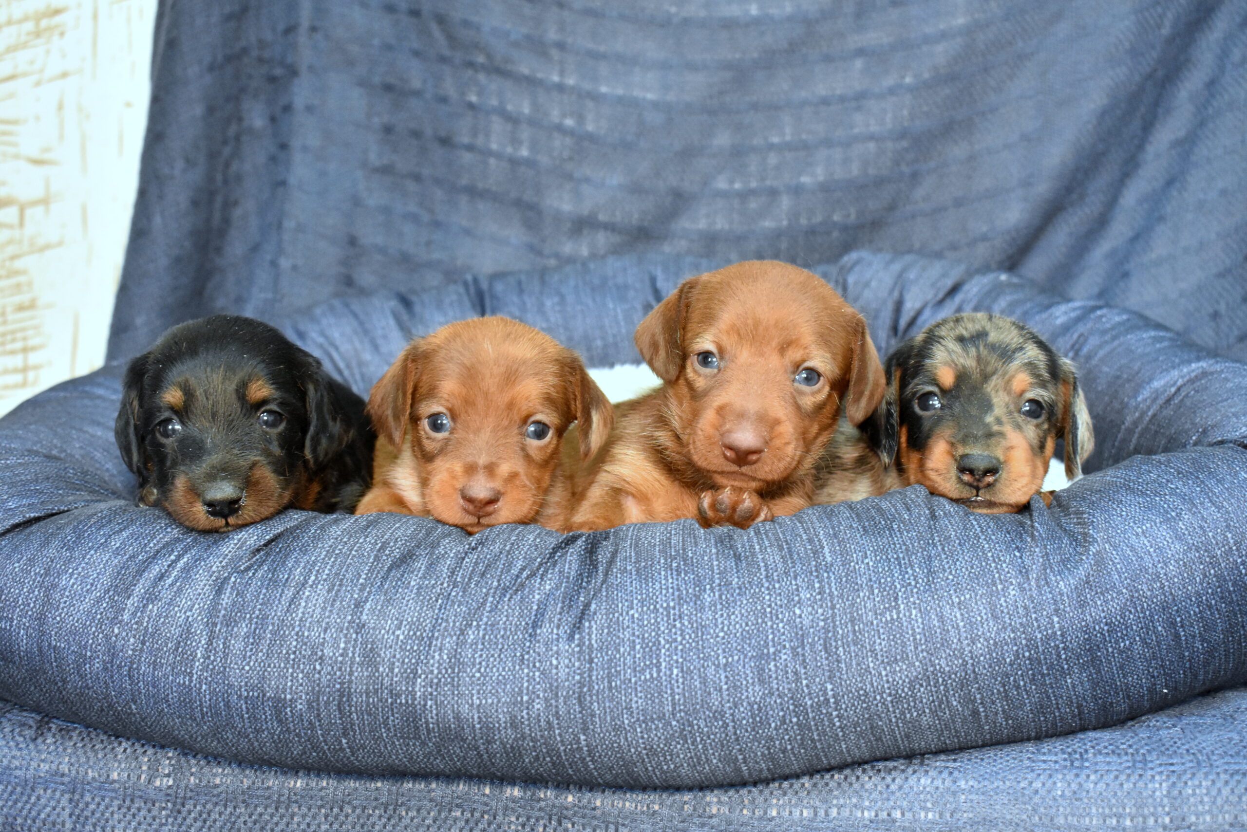 Dachshund puppies are little bundles of courage, curiosity, and charm — truly living up to our name, Puppy Dreams. With their long bodies, short legs, and expressive eyes, these spirited pups are instantly captivating. Dachshunds are more than just their adorable appearance — they’re intelligent, playful, and deeply affectionate. Whether curling up for a cozy nap or proudly trotting around like tiny adventurers, they bring laughter, loyalty, and warmth to every home. These puppies adapt beautifully to various lifestyles, whether you live in an apartment, a suburban house, or a bustling city. For first-time dog owners or experienced families alike, Dachshunds offer a delightful mix of spunk, affection, and lifelong companionship.